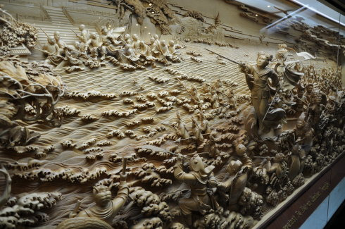 新雷峰塔的底层,这一层展出的是大型东阳木雕壁画《白蛇传》,雕工精致,让人赞叹!