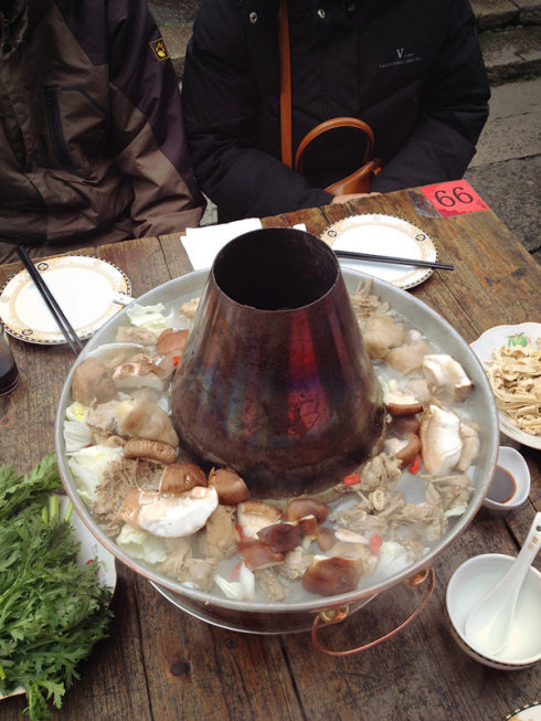 天有点凉,我们选择了鸭肉猪脚火锅,点了些蔬菜,要了一杯热乌酒,共花费160元。乌镇长街宴重温历史,感受气氛就可以啦!