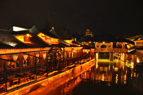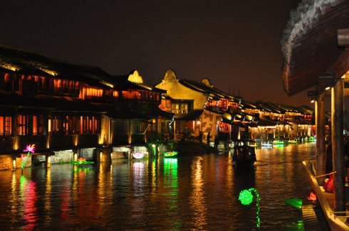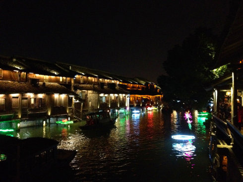 晚饭后,全家去夜游西栅。西栅的夜晚和白天是完全不同的感觉,依水而建的老建筑用现代的灯光技术呈现出了新的意境,新旧交替恍然如入两座古镇。这时,最适合乘坐小舟在河上观赏这绚丽的夜景!