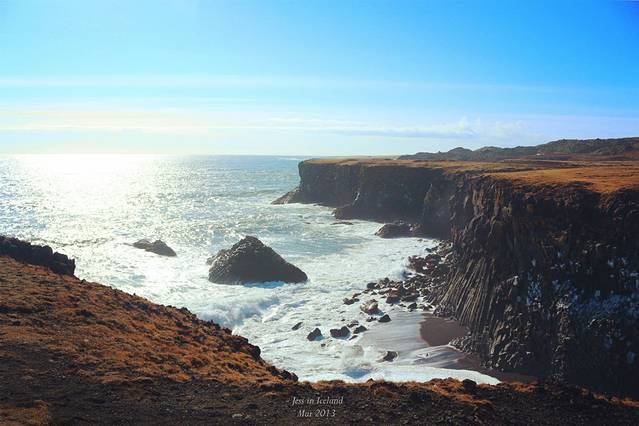 冰岛盛产黑沙滩,Djúpalónssandur是其中著名的另外一处,也许是天气好的缘故,我感觉它美过南岸的Reynisdrangar,fd看了照片说这里有点“陆地在这里结束,海洋从这里开始”的感觉