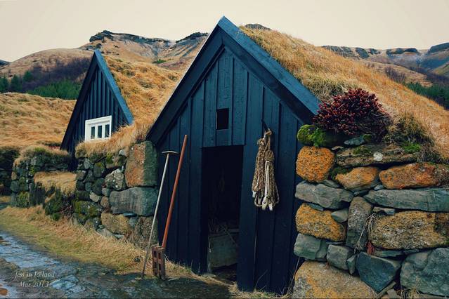 冰岛的传统民居,可爱的外形瞬间让我想起在新西兰Matamata看过的霍比特人的小屋,不过比后者稍高一些