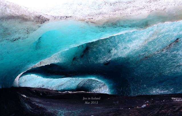冰岛有好多很美的蓝冰洞,蓝得很透,很妖冶