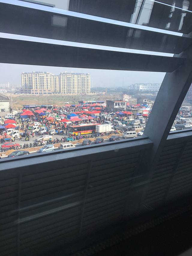 早早的坐上地铁🚇,宁波1⃣️号线直达,高架上视线极好,刚好路过一个集市,看着很热闹。