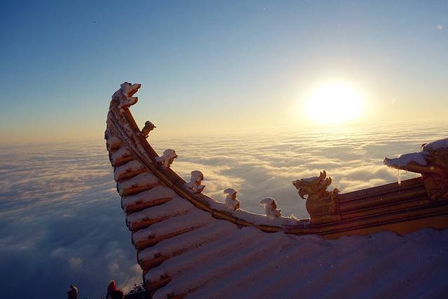 接下来是金顶的日出,等待了一个小时,手都冻僵了,建议大家带足暖宝宝!