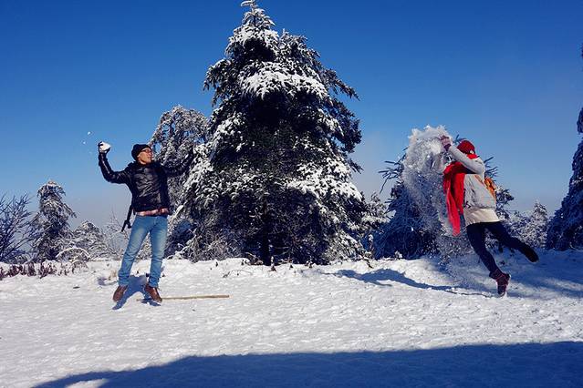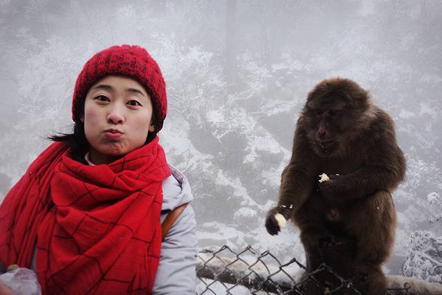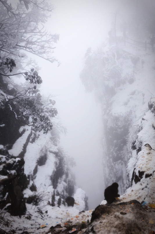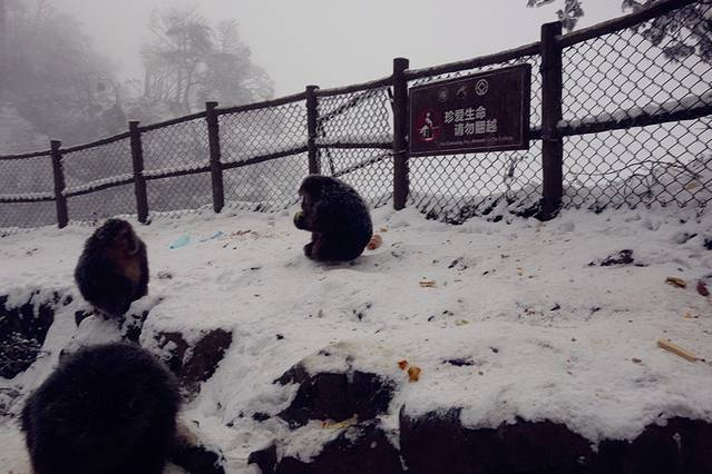 到了雷洞坪买好车票,发现时间还很早,于是决定弥补昨天的遗憾,去看看雪里的猴子,顺便再多拍点雪的照片,成都真是很难见到雪花啊!