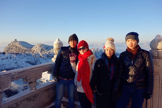 此时上山有很多方案,我们选择的是坐当地车先到清音阁开始爬一段,在到万年寺去坐班车到雷洞坪,在此建议如果不爱好爬山的朋友可以直接买往返车票90元到雷洞坪下车!因为我觉得我们爬的清影阁到一线天到猴区在返程到万年寺的路上风景平平!还不如直接到雷洞坪去玩雪!