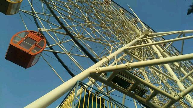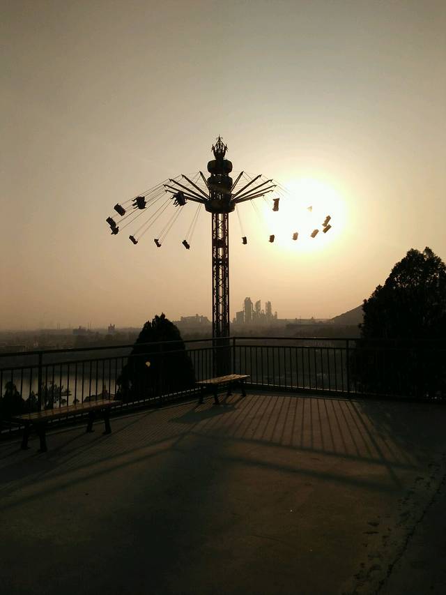 在飞行台,我俩体验了一次从心脏出发、冲破喉咙的呐喊,身旁此起彼伏的尖叫声是宣泄、是燃烧。当沐浴着阳光在全园最高处欣赏脚下的风景,我们又感受了一次“高处不胜寒”的自在。