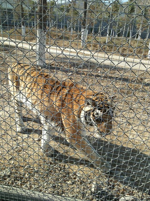 因为在野生动物园流连太久,我和河南科技学院的李灵玉姑娘与其他小组成员失散了。两个姑娘兴致勃勃地玩这个玩那个,倒也别有一番滋味。在一条长廊里,两旁挂着许多鸟笼,有两只相亲相爱的鸟儿在影影绰绰里为对方精心地梳理羽毛,阳光投射在他们的家上面,绽放出令人心醉的光芒。在猛兽区,笨笨的大黑熊直起身子,眼巴巴地瞅着游客手中的食物,还不忘跟隔壁猛嗅绿叶的老虎打招呼(纯属作者脑补~)。