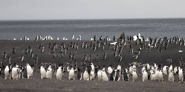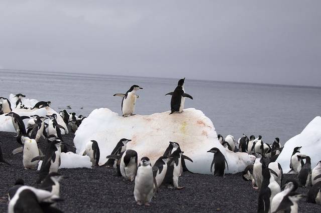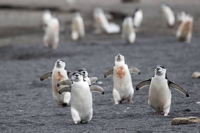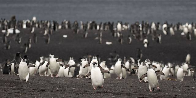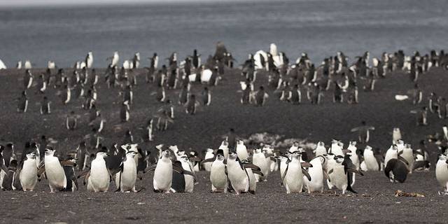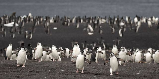 帽带企鹅体长70多厘米,体重可达4公斤,全球有750万对,而欺骗岛上有10万对。