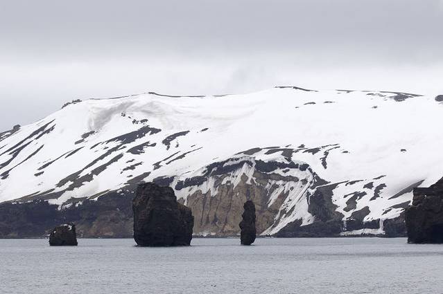 先介绍一下欺骗岛,它是南极洲的活火山之一,位于南极洲东北的南设得兰群岛上,是黑色火山岩岛。据说二十世纪的某天,南极海域大雾弥漫,几个捕鲸人偶然发现雾中有个岛,但海水一涨,又不见了,因此给了它欺骗岛的名字。