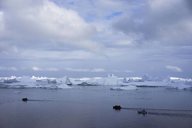 北极和南极行,都是德迈国际组织的,乘游轮抵达目的地海域,平时在游轮上,上下午如果条件允许,就各组织一次巡游(即橡皮艇在大海上巡航)或登陆(乘橡皮艇登陆)。