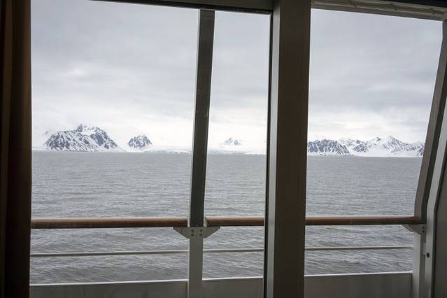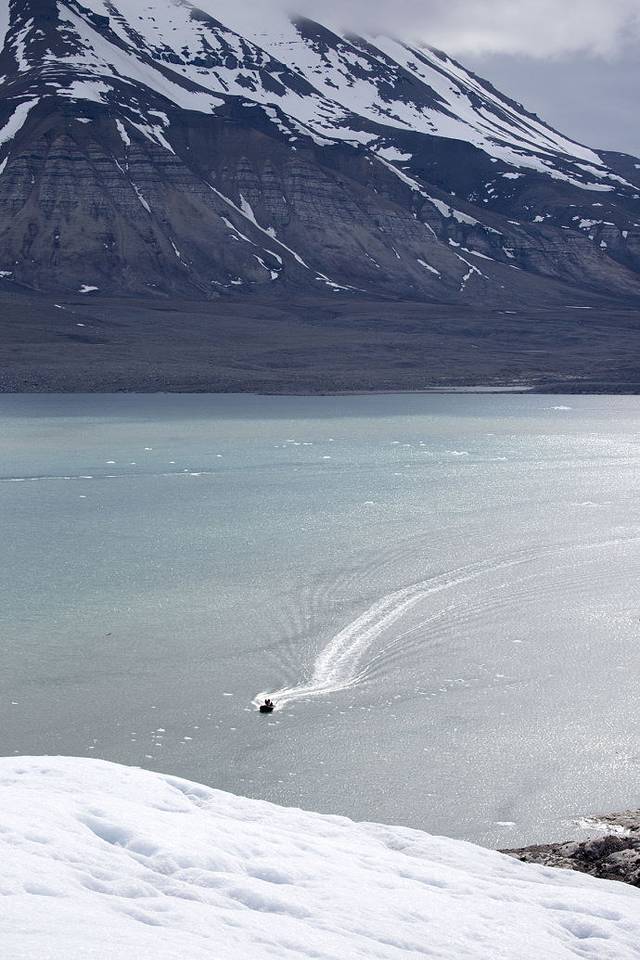 不过,我们在斯瓦尔巴的运气不错,上了游轮的第二天,就两遇北极熊。第一只超远,只能勉强看到这种巨兽在茫茫雪海中的一个小点,第二只距离近了不少,而且,这只熊刚刚捕了一只海豹。