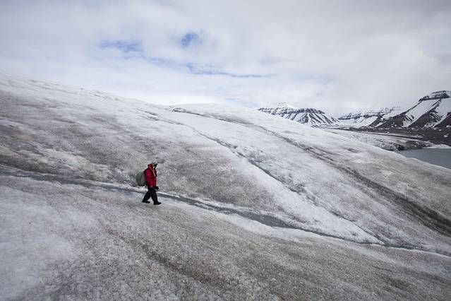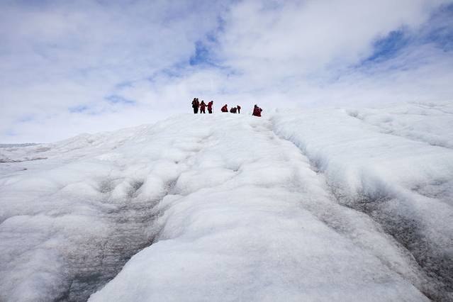 在北极的最后一天,法国的探险队队长决定带我们爬一下冰川,据说是他们第一次这么做。