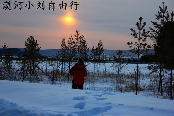 早上07:00左右起床后出门在村里溜达,07:30左右观黑龙江日出。 这时候总算感受到北国的凛冽了。鼻子里仿佛有了胶水般不自在,眼睫毛上开始挂了冰粒子。在书有神州北极大石碑的广场上,在千里冰封白雪覆盖的黑龙江上,看着那太阳从山的脊梁上升起来,终于明白了“破晓”一词的涵义。不容易啊,中国最北的日出,还是相当美的。
