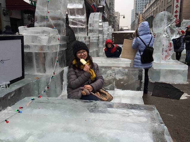 虽然我不是学建筑的 对建筑也没有特别的爱好 但仍然被这里街道两边的各种俄式建筑所吸引 充满着异域风情的小店热情的欢迎着南来北往的人群 哈市冬日的寒冷在这里竟消失的无影无踪 道路两旁精心雕刻的冰雕 传递着冬日的问候 作为生长在吉林的北方人 冰雪对于我并稀奇 但如此晶莹剔透的冰还是深深的打动了我