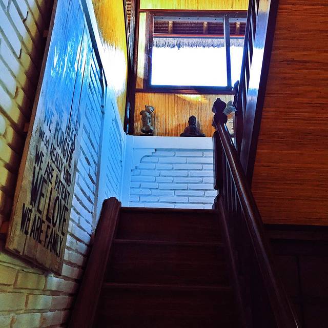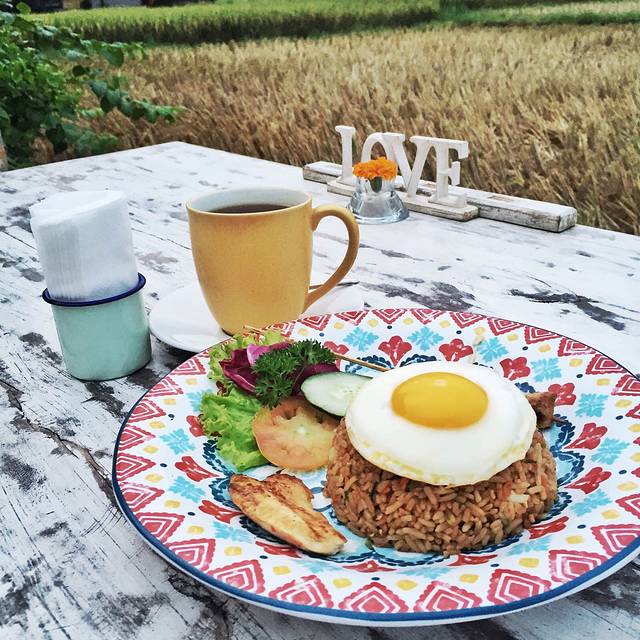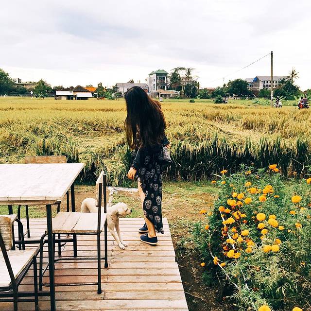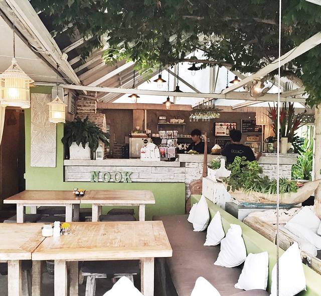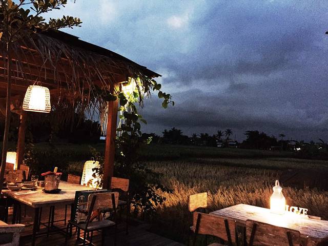 回家整顿了一下,大家决定去之前在回家路上看到的一间很棒的饭店,叫做nook,一进去以后,果然很好,田园风格的小店,开放式的,周围被稻田围绕着,马上大家就决定取消后面的计划,让司机下班,就一直待在这里,然后步行回家