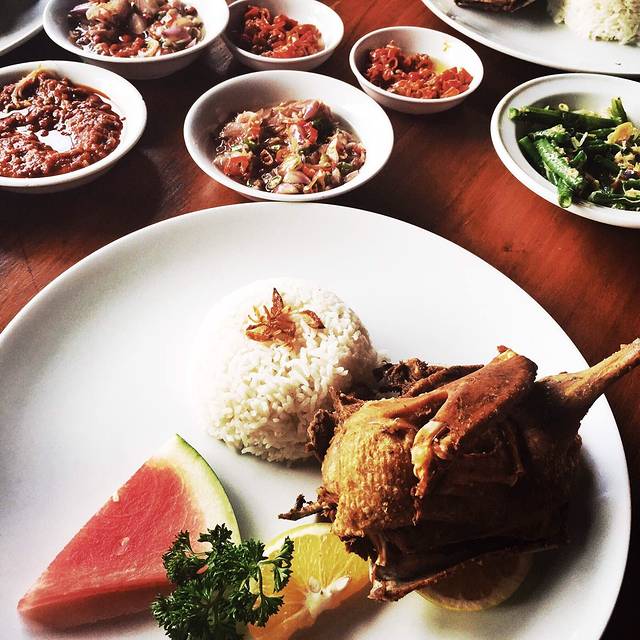 鸭子是炸的,不是烤的,要配上所有的酱料一起吃,印尼人就是爱吃油炸的,肉,酱料,尤其是辣椒