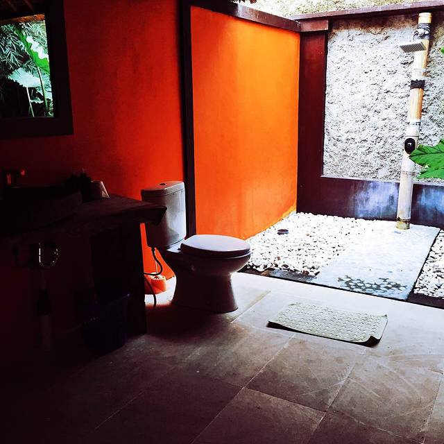 室外的卫生间,虽然说洗澡的时候可以看到天空,但原生态的对于我这种厌恶虫子的也是种挑战,最后却是被一只蜥蜴吓了一跳,忘记拿这间的名片了,不过你可以通过little tree的联系方式询问这一间