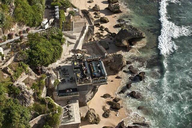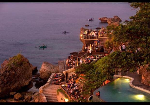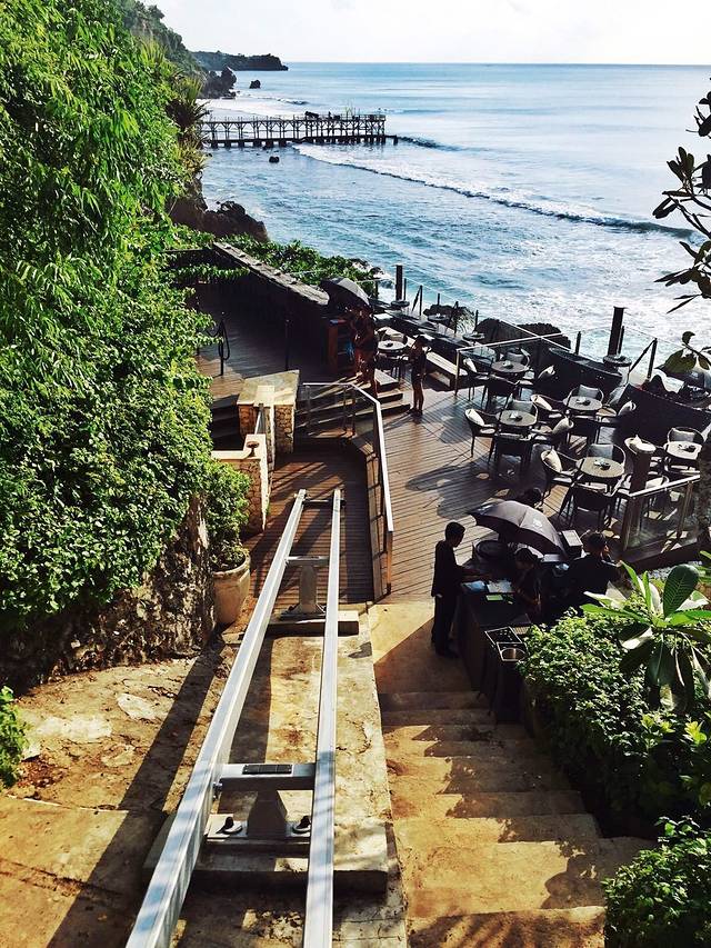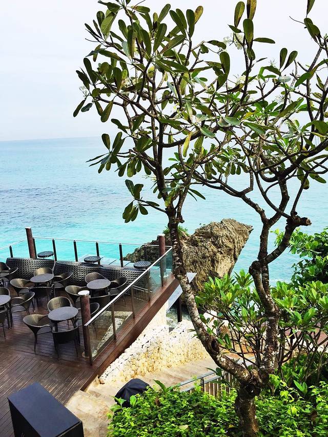 言归正传,之前看到rock bar的照片,瞬间就沦陷了,海边岩石上的酒吧,所有照片都散发着一种汹涌澎湃的气势,难怪会被称为世界第一的bar,所以专门订了一晚ayana hotel的住宿,因为去rock bar只有坐电梯这一种方式,才可以下到这个岩石上,电梯只有一部,酒店客人优先,同学说上回她排电梯,排了整整一个半小时都没排上…所以这回就专门订了一晚,就是为了rock bar,可惜最后还是因为老师推迟了考试时间,错过了在bar里看落日的机会…anyway,我们还是愉快的到达了酒店,机场到金巴兰,15$左右,私家车,后来也一直用了这个司机的车,大家到了就随缘看面相选司机吧…