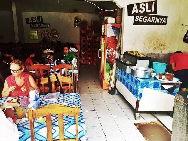 美美的一觉睡到中午,去吃美食啦。这是在当地非常有名的一家店,全世界所有的地道食物都藏在这种路边小店里吧,只卖一种食物,应该是叫做乳猪拼盘吧,印尼的同学对这里赞不绝口,当地司机应该全部都知道
