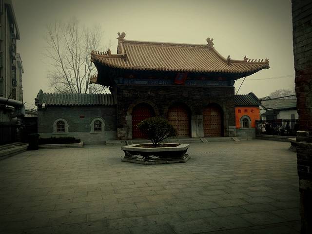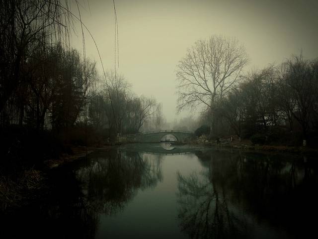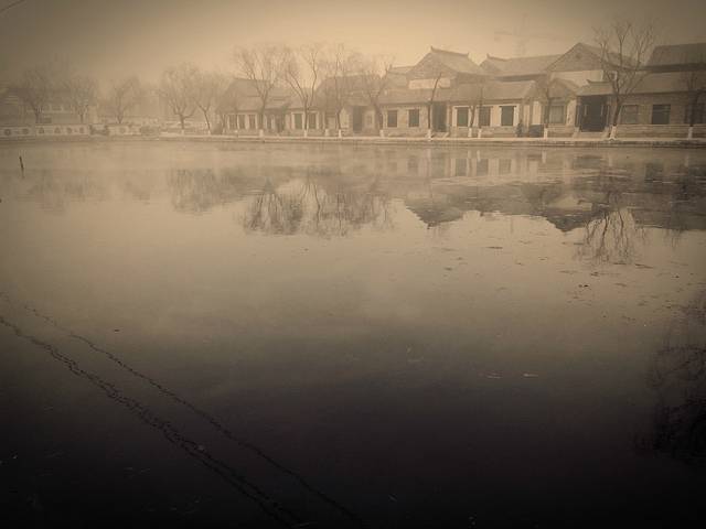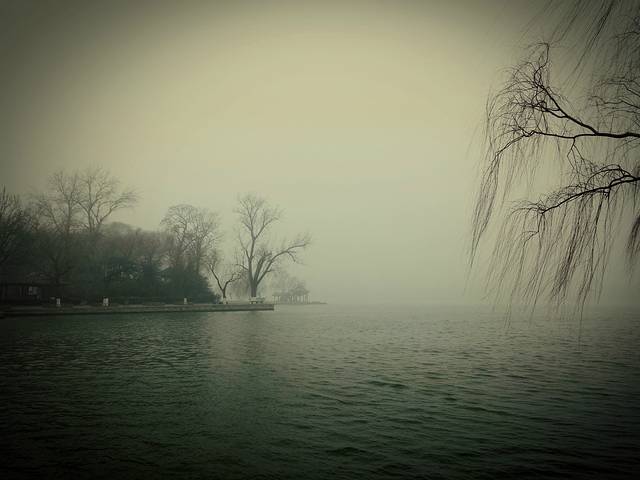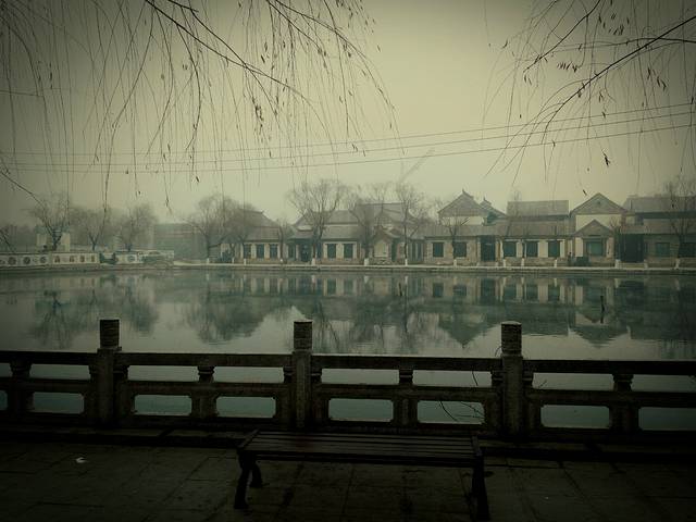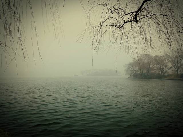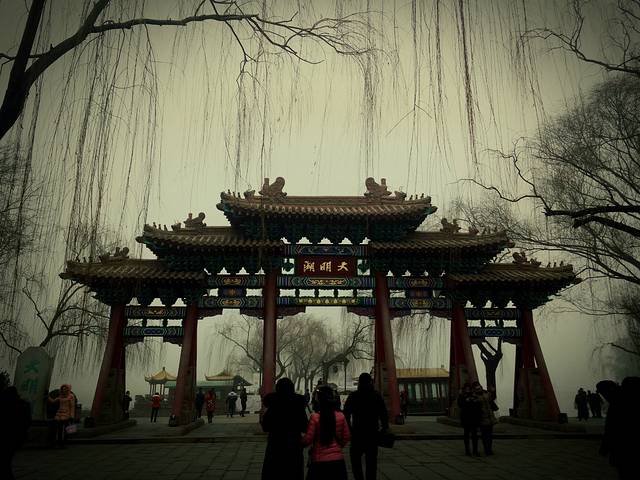 沿着小街一直走到头,你就来到了大明湖的南门,一说起大明湖大家想到的就是“皇上,还记得大明湖畔的夏雨荷吗”?可我脑补的却是容嬷嬷那一张脸,顿时本就寒冷的冬天感觉气温又一次低了几度。大明湖还是推荐大家春夏季节去,我去的时候湖中光秃秃的没有满湖的荷花就剩下几篇残叶,枯黄的耷拉在浅水滩中,济南冬天的雾霾也让你望去都是白茫茫的一片,到时跟仙境有的一拼,所以出门一定要带口罩啊。