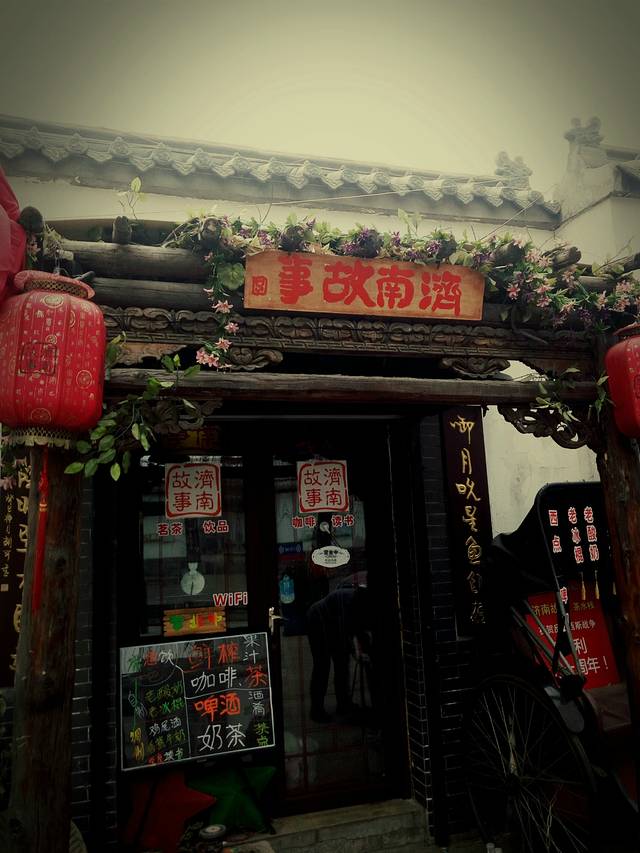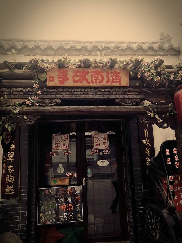 在街巷中有一家茶书栈叫做济南故事,如果累了,不妨进去小酌一杯,好好的休息下,点一杯热饮,静静的读一篇文章,瞬间让你满血复活,小店装修的很好看,很值得进去看一下,依稀记得店家还有一只白色的小狗,叫不出什么名字,只记得你推门进去的时候他会吠叫一声,当你走之后他也会吠叫一身,是说再见吗。很可爱,很安静,店家老板肯定也是个有故事的人,捧着小狗静静的坐着看着书,只要你一进去,你就会褪下所有的倦容。
