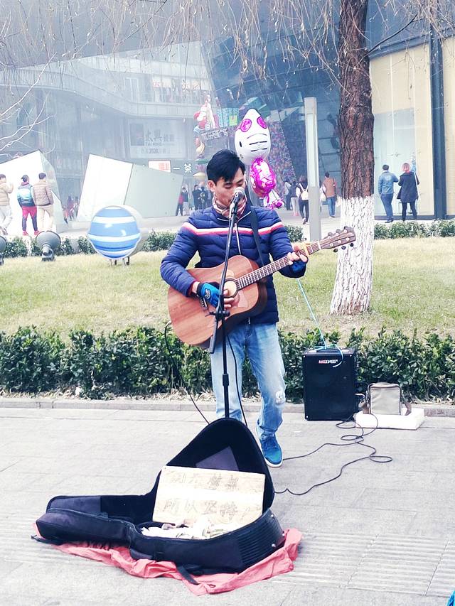 然后步行至芙蓉街,很近几分钟就到,在去的路上我还遇见一位流浪歌手,在那里表演,声音很好听,他告诉我,为了他的梦想,他独自背着吉他与行囊,踏上了去往远方的路遥。我很佩服他,除了在他的吉他盒里放上十元钱,我没有什么能帮的上他。他是勇敢的,骄傲的,执着的。