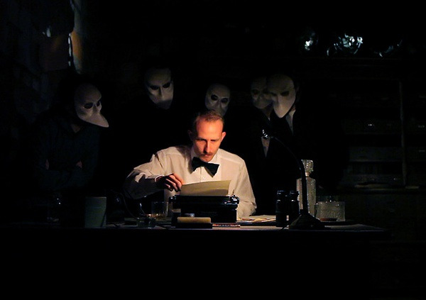 演员们在五层楼的宾馆各个房间奔波、交谈、打斗、暧昧,而观众们戴着白色的鬼魅面具四处游走以满足故事欣赏者的窥淫癖。