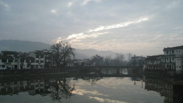 我们放弃去西递,留半天时间自由在宏村走动,清早的宏村,阳光、炊烟、薄雾、小桥、流水、倒影让人仿佛置身于世外桃园,不舍离去。