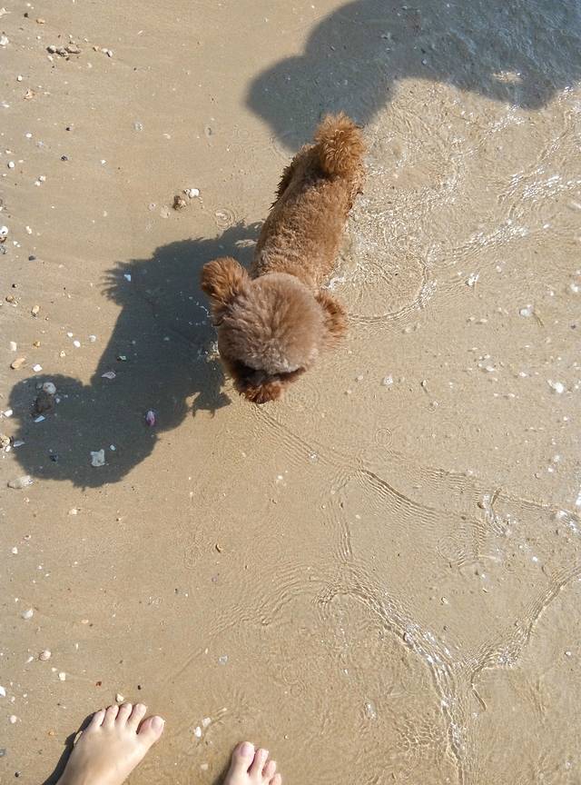 隔壁阿姨带着小狗来游泳,结果小狗狗屁颠屁颠的跑下水游泳,还在旁边的沙滩跑来跑去。很多家长带着小孩子来捡贝壳和找寄居蟹。这边的海滩少了许多喧闹和浮躁,可以好好享受这海边的时光,实在是惬意。