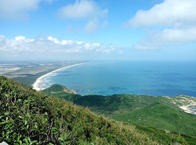 铜鼓岭上面有个军事基地,还有只猴子,车子到达后还需要走一段路程才可以登到顶峰俯瞰月亮湾。上面的风光,那真真是好看极了。