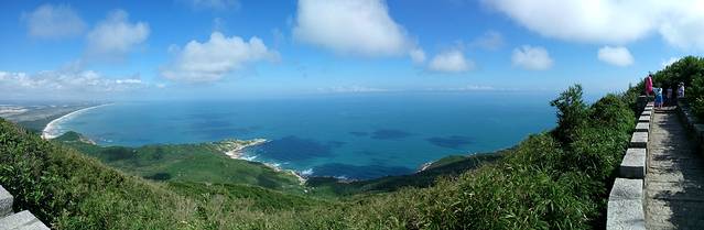 其实铜鼓岭没什么特别,最大的亮点在于可以俯瞰整个月亮湾,视野非常好,天气好的时候真的可以感受到海天一色。走路上到顶需要一个多小时,坐车就很快,票价20一人,铜鼓岭不需要给门票。我们去的那一年,真是个阳光灿烂的日子,所以我选择了坐车.......