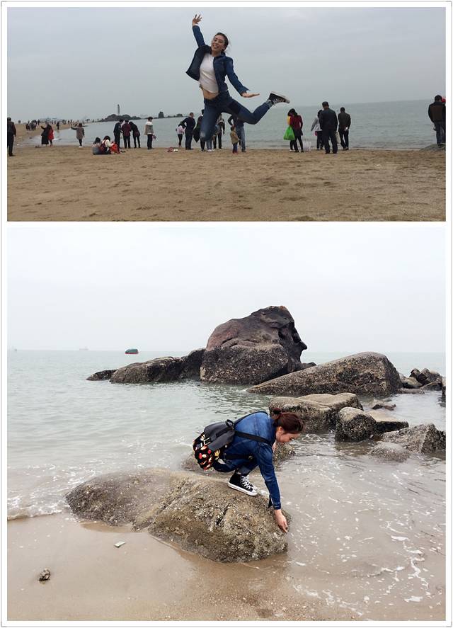日光岩的背后就是一整片沙滩,那天阳光正好,实在是惬意。