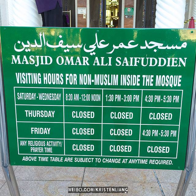 清真寺全名:奧馬爾·阿裏·賽義夫丁蘇丹清真寺 Sultan Omar Ali Saifuddin Mosque