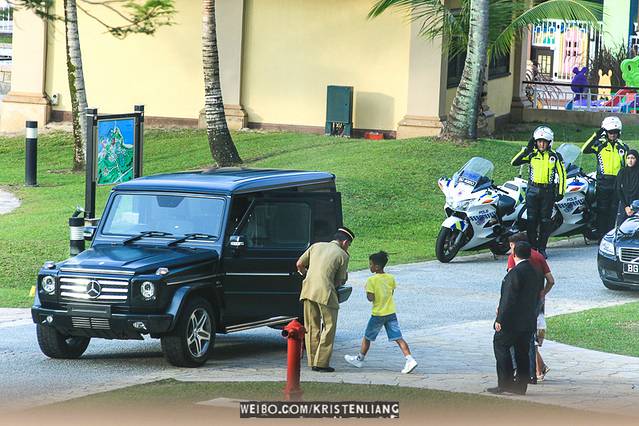 看完水上村就回酒店找我剛睡醒的媽去吃早餐,然後退房去帝國酒店~ 進房間沒多久我爸就開始「露台拍鳥模式」了,然後突然警車啊、黑衣人啊、軍裝的人都來了,然後停在路中間的車也沒有車牌,加上讀過王室的人經常去酒店度假,我們就在露台等著看了~ 結果!!!是汶萊蘇丹國王和他兩個孩子!!!