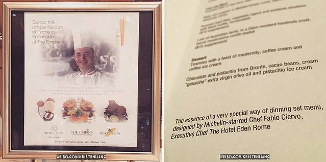 正好碰上來自義大利Hotel Eden的米其林一星主廚Fabio Cervio來帝國酒店當客座主廚,於是就訂了吃晚餐,餐具夠多吧。食物很棒!