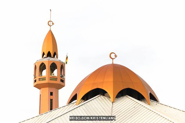 博而基亚清真寺,又稱杰米清真寺,汶萊最大的皇家清真寺,是文莱第29任苏丹于上世纪90年代建造的,大清真寺屋顶共有29个圆拱金顶,由45公斤黄金做成。(百度)確實是值得去的清真寺