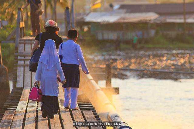 清真寺旁邊就是水上村落,日落時分碰上回家的人。