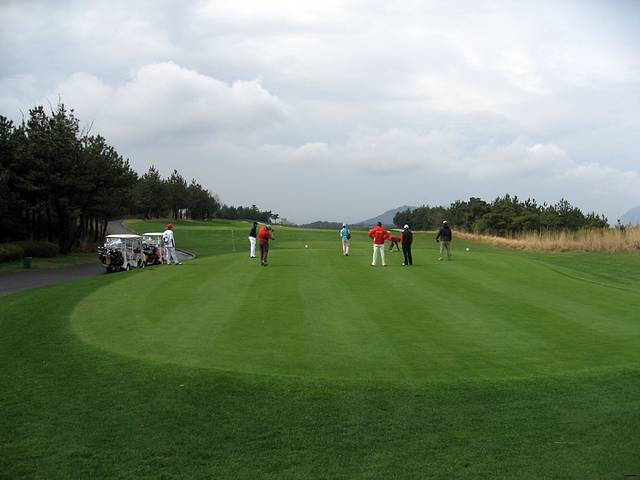 济州岛有近30家高尔夫俱乐部,最出名的莫过于九桥高尔夫俱乐部,规格高,专业性强,多数专业级比赛在此举行,但是不是我此行的目的。我比较钟情于济州岛的乐园高尔夫球场。