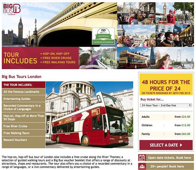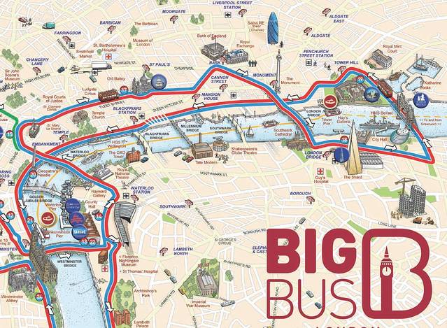 我們是買的Big Bus觀光巴士,24或48小時內任意坐巴士,站點都在倫敦各個景點附近,同時包括游船、幾個路線的步行團(有向導)、一本倫敦的優惠券、耳機(在巴士上聽中文介紹)、雨衣。網上買票會比較便宜,當場買要30磅。