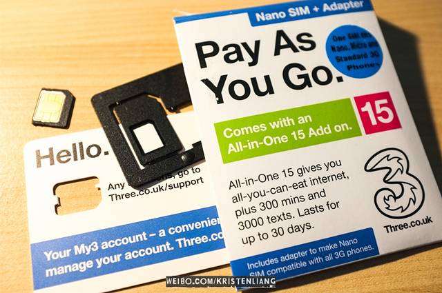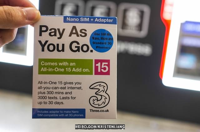微博控怎麼可能不買張上網為主的電話卡!!強烈推薦3的這張卡:無限上網、300分鐘通話、3000短信。最重要的是無!限!上!網!買一張開熱點,信號好,還配卡套。30天有效,機場自動販賣機有售,20英鎊。缺點是不能打國際(需另外充值),但有了 facetime 微信誰還需要國際長途呢!