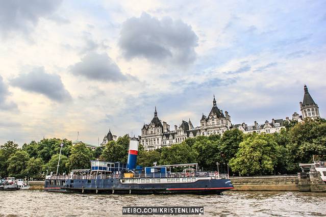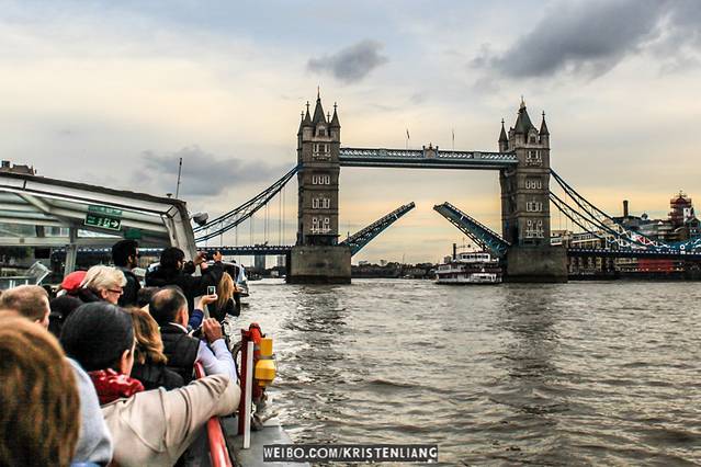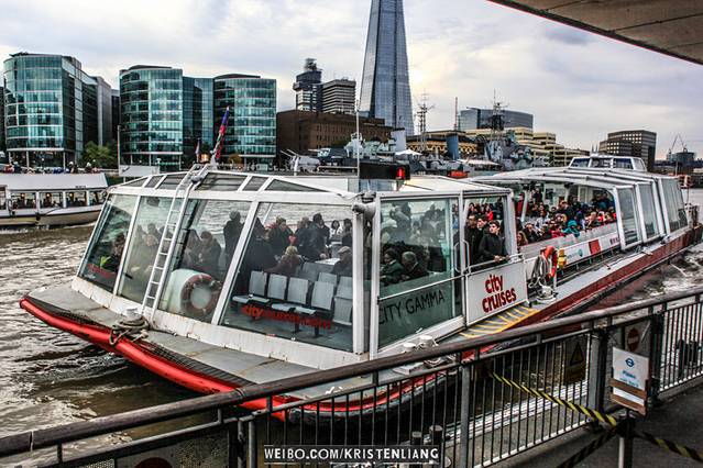 這個就是包括的游船,船上的導遊超幽默,一邊玩笑一邊介紹泰晤士河兩岸的建築和小知識。例如那條橋最被人討厭、那條最有歷史..... 開船就剛好看到倫敦橋開呢~