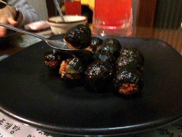 脆骨包饭,这可是许姐姐的最爱,超级辣,最开始一口吃了一个,又喝了又烫又辣的海鲜锅巴汤,简直爽呆了,难怪叫月的眼泪。