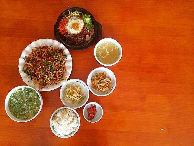 附上那天的中饭,一家韩式饭店,第一次坐在炕上吃饭,吃着,吃不完的饭菜…好多