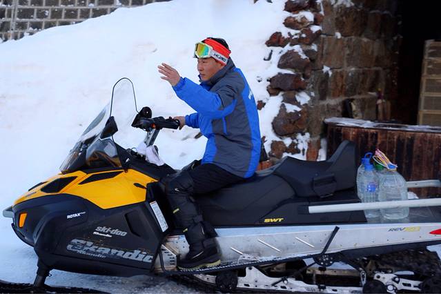 借了教练的眼镜,想拍一张酷酷的照片,结果,好像并没有很酷,哈哈,苍茫雪地,唯我一人,嗯,不错~
