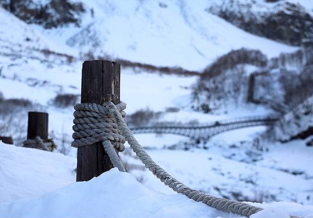雪太厚,覆盖了道路,只剩下桩和上面的绳索