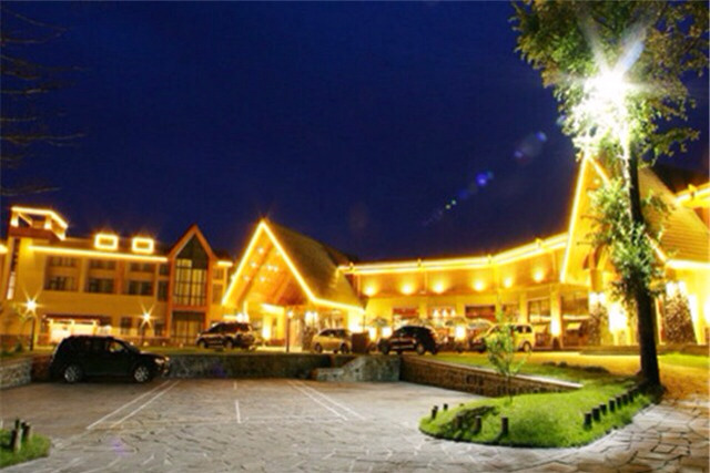温泉就在长白山脚下,有室内和室外的池子,环境还不错,温泉很赞!泡完皮肤都是滑的,听他们说这是国内难得的几个真温泉之一,有各种温泉,什么红景天啦,额,还有不记得了