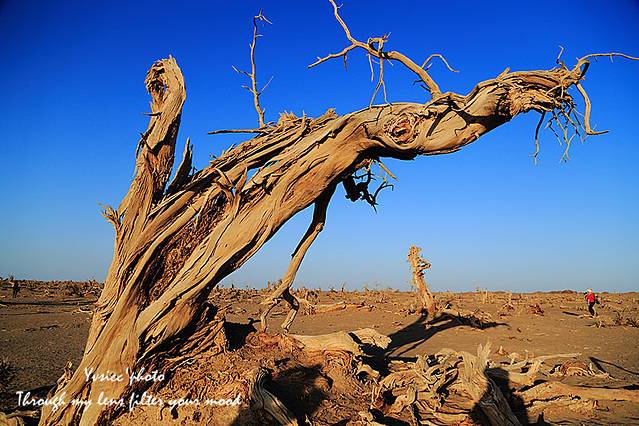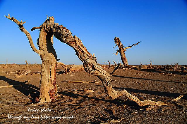 怪树林,胡杨的坟墓,位于达来呼布镇东南20公里处的荒漠中,这里枯死的胡杨“陈尸”遍野,呈现出古老的原始风貌。