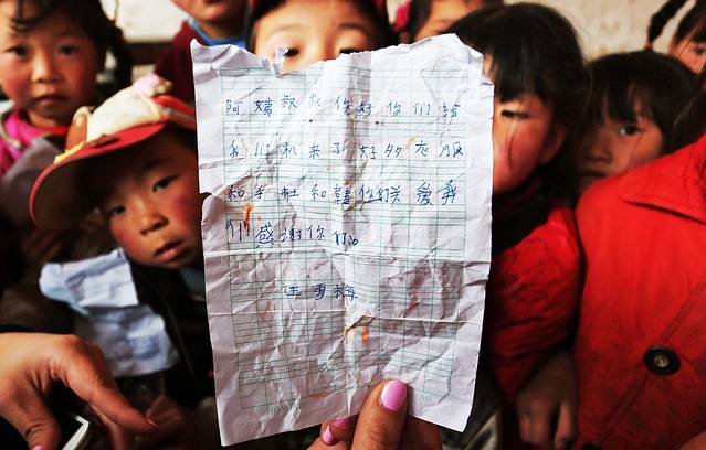 记忆中最深刻的一件事是有一天午饭时,我去教室发糖果给孩子们,其中有一个特别瘦弱的小男孩,为了感谢我,从口袋里拿出一块黑乎乎的东西,用小刀切了一半送给我。一开始,我以为是块牛肉干,后来仔细一看,原来那是一块咸菜疙瘩……很显然,那是他能送给我的最好的东西了!