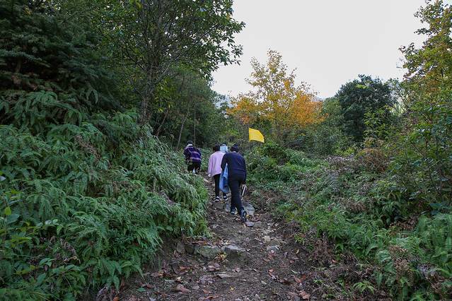 往上爬了二十分钟,身体也开始热起来,大家纷纷脱去外套,打开散热模式!